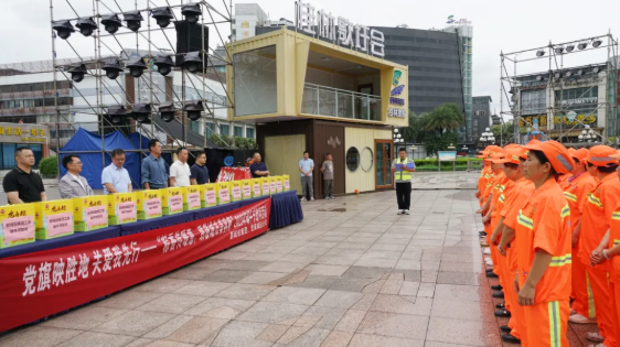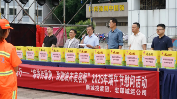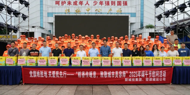 黨旗映勝地 關(guān)愛(ài)我先行——新城投集團(tuán)聯(lián)合宏謀城運(yùn)公司開(kāi)展“粽香傳暖意,致敬城市美容師”2025年端午節(jié)慰問(wèn)活動(dòng)