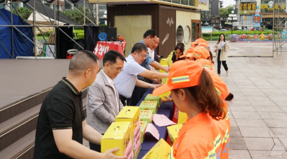 為深入踐行習(xí)近平總書(shū)記“以人民為中心”“勞動(dòng)最光榮”的指導(dǎo)思想,切實(shí)把組織關(guān)懷送到基層勞動(dòng)者心坎上,進(jìn)一步提升環(huán)衛(wèi)職工隊(duì)伍的職業(yè)認(rèn)同感和幸福感,2025年5月29日端午節(jié)前夕,新城投集團(tuán)聯(lián)合宏謀城運(yùn)公司在秀峰區(qū)中心廣場(chǎng)舉辦“粽香傳暖意,致敬城市美容師”端午節(jié)慰問(wèn)活動(dòng)。此次活動(dòng)得到市城管委,秀峰區(qū)政府、城管局、環(huán)衛(wèi)站的大力支持與指導(dǎo)。市城管委黨組成員、副主任蔣毅出席活動(dòng)。受新城投集團(tuán)黨委書(shū)記、董事長(zhǎng)朱毅委托,黨委副書(shū)記、紀(jì)委書(shū)記、工會(huì)主席譚力源代表集團(tuán)黨委、領(lǐng)導(dǎo)班子及全體職工,向奮戰(zhàn)在環(huán)衛(wèi)一線的干部職工致以節(jié)日問(wèn)候。