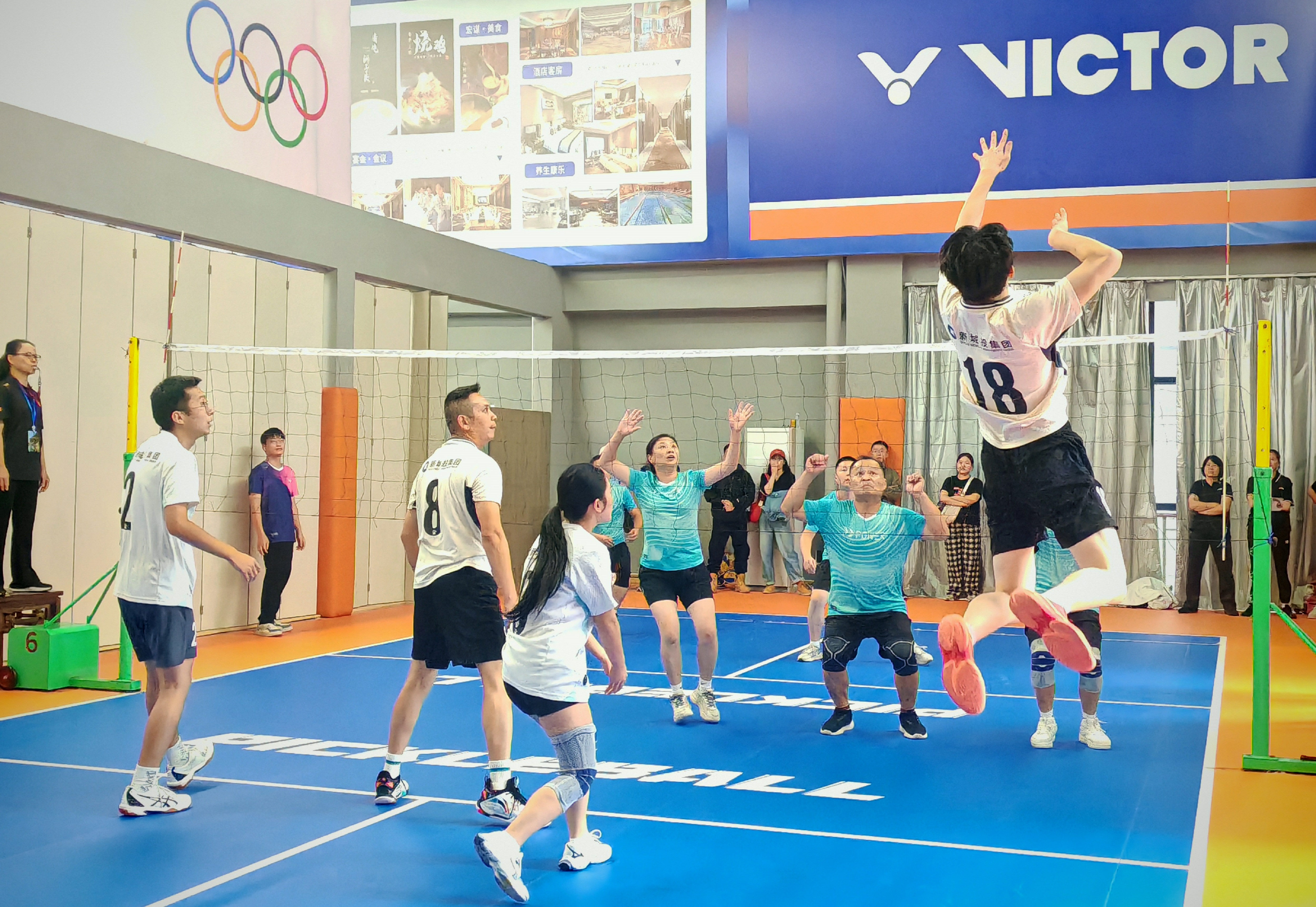 精準(zhǔn)有力的發(fā)球?qū)覍掖蚱茖κ止?jié)奏,穩(wěn)健到位的墊球筑牢防守底線,敏捷果斷的攔網(wǎng)成功阻擋對手攻勢,勢大力沉的扣球頻頻斬獲關(guān)鍵得分。每一次巧妙傳球、每一輪精彩得分,都讓現(xiàn)場氣氛瞬間升溫,集團(tuán)職工組成的拉拉隊立刻響起“新城投,加油!”的助威聲,吶喊聲鏗鏘有力、此起彼伏,與隊員們拼搏的身影相互映襯,共同營造出文明有序、熱烈高漲的賽事氛圍。